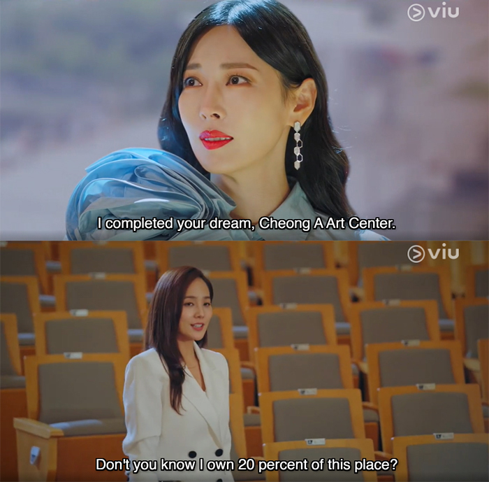 6.) Cheon Seo Jin finally completed the Cheong A Art Center, only to find out that Oh Yoon Hee owns 20% of the shares. Cheon Seo Jin only has 15% of shares. They also found out about Oh Yoon Hee being in possession of Logan Lee’s money.