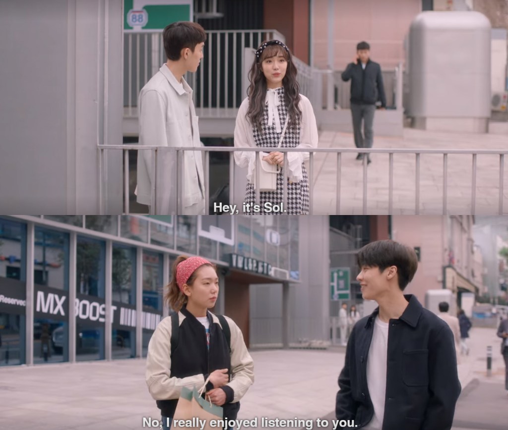 3.) Ji Wan is out on another date, and sees Sol hanging out with a guy. The guy is the same person who Sol bumped into in the previous episode. Sol met up with him to give him his laundry money, but he only wanted to hang out and eat a meal with her.