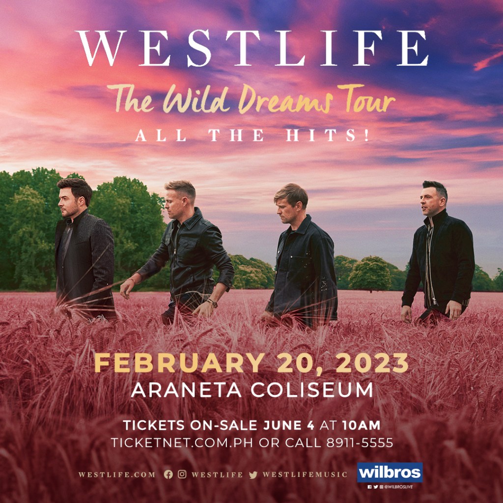 Presented by Wilbros Live. Tickets to WESTLIFE: The Wild Dreams Tour in MANILA will be on-sale beginning June 4 at 10AM via TicketNet.com.ph and at all TicketNet outlets nationwide.